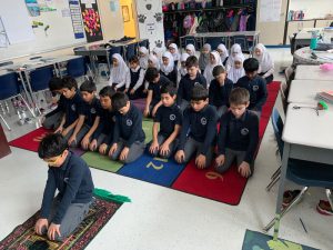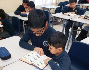Daily reading of a portion of the Quran by the entire school to commence the day. Students read portions of the Quran in order and complete the whole Quran by the last month of June. A reputable reciter’s recording on the public address guides the reading.
