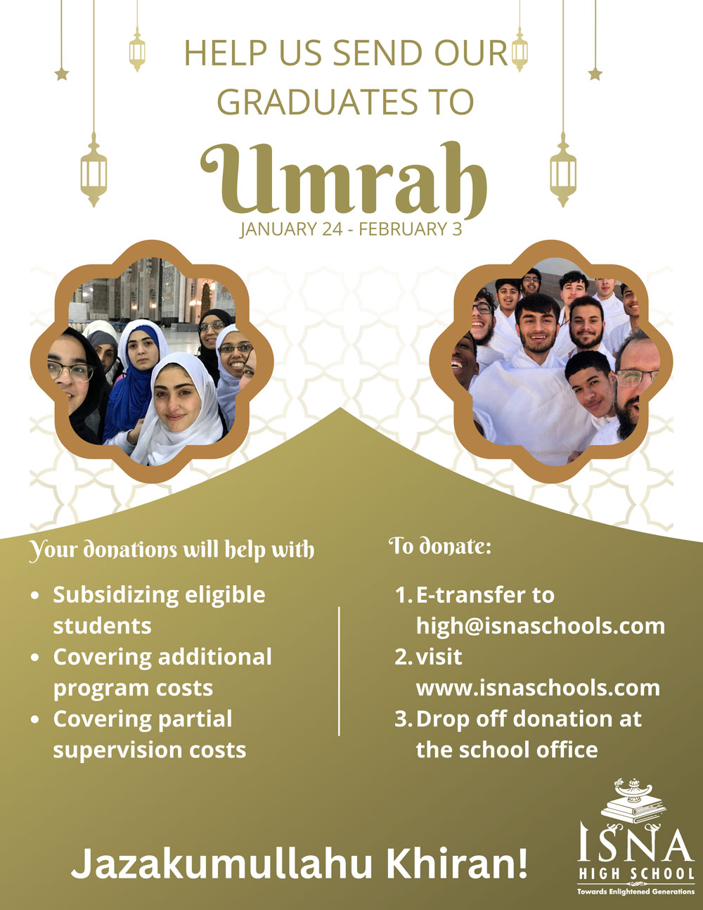 “Towards Enlightened Generations” is not only the motto of ISNA High School, but it is our vision and goal. Empowering students to succeed academically, socially, and spiritually with pleasing Allah as their inspiration is what we believe will create enlightened generations. With the help of Allah, the dedication of the staff and the talents of our students, we are able to hold many activities and events to strengthen school spirit and enrich the school learning environment every year. It is our philosophy to involve students with organizing and running many of the activities and events held throughout the year to help nurture and foster leadership, and instill a sense of confidence in the students.